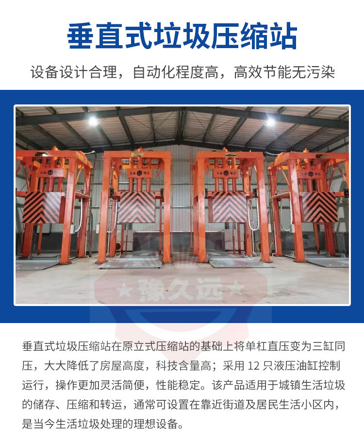 ◇采用垂直壓縮方式,壓縮力大,垃圾塊壓實(shí)密度大。