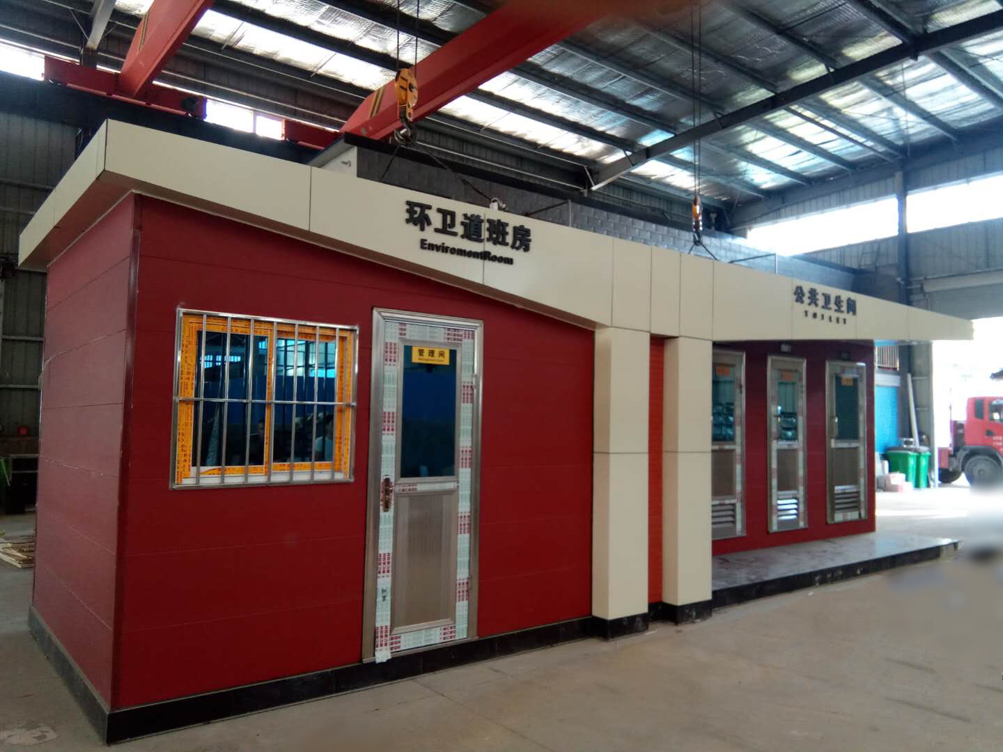 1、房體結構: 采用輕鋼龍骨結構,鋼材全部使用國家標準鍍鋅鋼材。根據房體的大小特選用國標方管(50-100)焊接而成。鍍鋅管厚度為2.8mm,方管經(jīng)過(guò)除銹后進(jìn)行鍍鋅、防腐處理。這樣就會(huì )延長(cháng)廁所使用壽命。