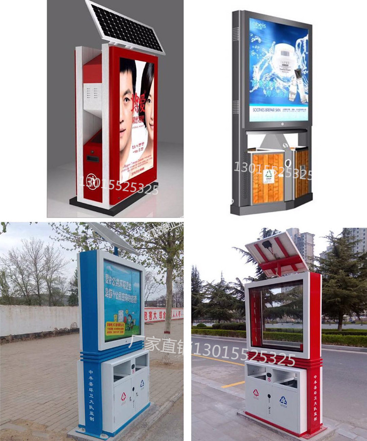 太陽(yáng)能廣告式垃圾箱目前是市場(chǎng)上銷(xiāo)量最大的、廣告效益是最好的、畫(huà)面尺寸最大的一款廣告傳媒垃圾箱。